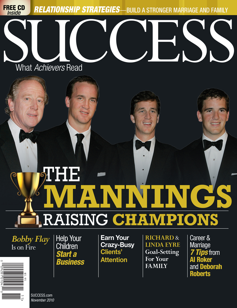The November 2010 issue of SUCCESS magazine is all about successful relationships with a cover feature on the Manning family, America’s first family of football. Discover how Archie and Olivia Manning raised a family of champions, including NFL quarterbacks Peyton and Eli and business executive Cooper, in an environment in which football didn’t make the short list of family values.